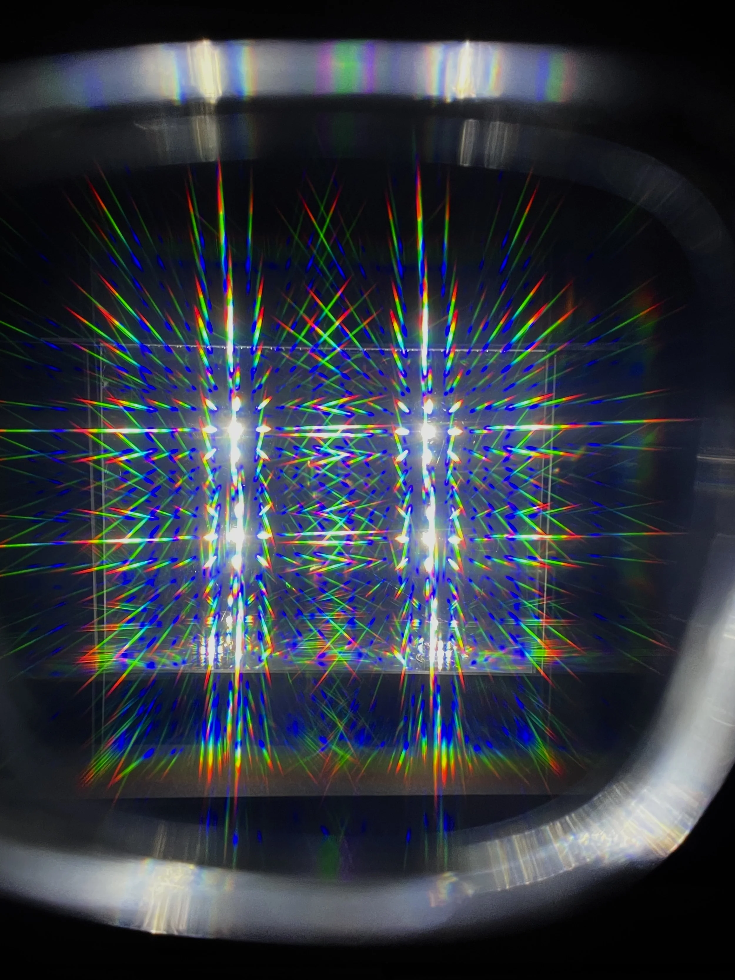 Kaleidoscope is an immersive and colorful lighting experience designed for exploration. The interactive glasses distorts ones perception of reality, creating an illusion of infinite space for the user. The adjustable panels slowly change color to illuminate the visual spectacle, reflecting the magic of iridescent light.